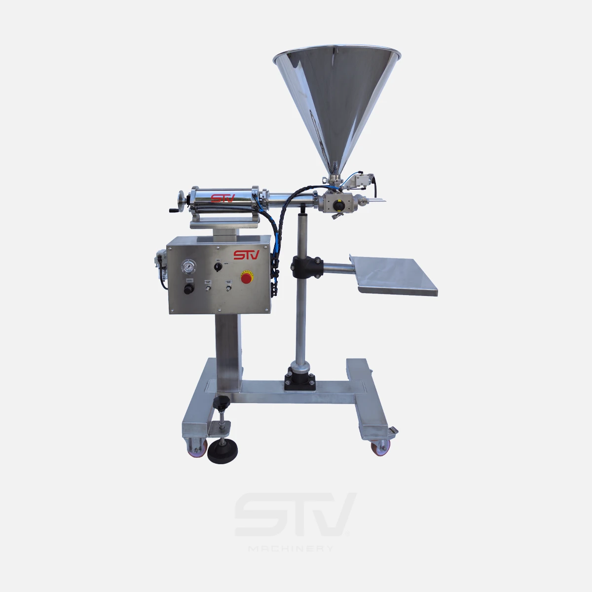 Our pneumatic volumetric filler, reliable and easy to use, allows extremely precise dosing of confectionery products (cannoli shells, cream puffs, croissants and cupcakes) with creams and jams (with or without pieces).