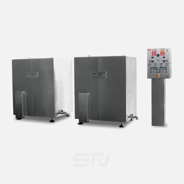 - Cubas con bombas centrifugadas por la lluvia de agua caliente en las diferentes secciones de tratamiento térmico, protegidas de doble filtro en acero inox. Las cubas alimentan los colectores que traen los tubos desmontables mediante unión de tubos, dotados de boquillas que pulverizan con amplia capacidad que garantiza un alto rendimiento y una mejor uniformidad de tratamiento.