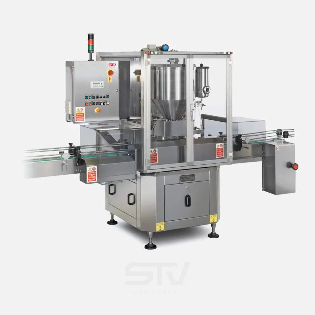 - Mod. DVL8-UT (con 8 grupos dosificadores) para una capacidad de 9.500 frascos/hora de 100 gr (productos densos y semi densos) / 6.500 frascos/hora de 100 gr (productos liquidos)